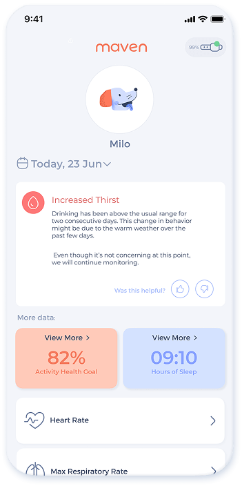 I can only say good things about Maven in general. I've been using Maven on my Border Collie since 2022 and it's been very valuable to have insights about his health. I've had multiple trackers throughout this time and the team is always there to help.