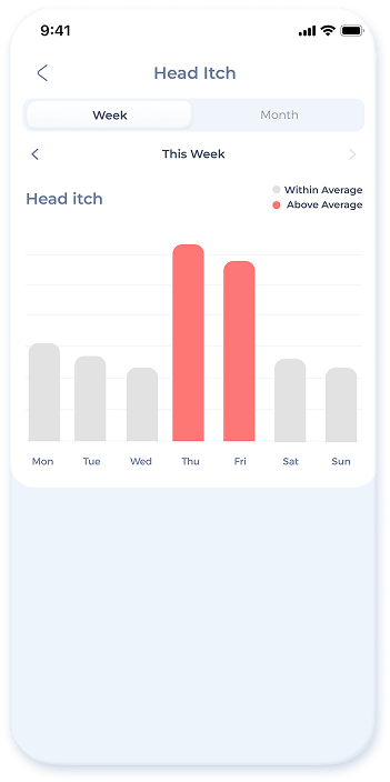 Overnight spikes are captured automatically. Maven highlights runs of high-itch nights, which can be especially helpful for diagnosing allergies or ear issues.